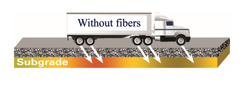 The unidirectional loads transmitted by the truck’s tires produces stress and fatigue in the unreinforced pavements.
