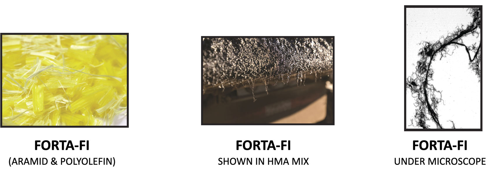 FORTA-FI® is a high tensile strength synthetic fiber blend formulated to reinforce asphalt mixes in both new construction and rehab projects. The mix of aramid and polyolefin fibers is designed to enhance your current mix design. Aramid fibers will not melt during production, and will bring mechanical reinforcement to the asphalt mix. They are known for their strength and durability in both high and low temperatures. The polyolefin fiber’s main function is to work as a transport mean of the aramid fibers, and help distributing them in a homogenous fashion across the mix, within five (5) seconds of dry mixing time. It is the most efficient fiber blend containing Aramid.